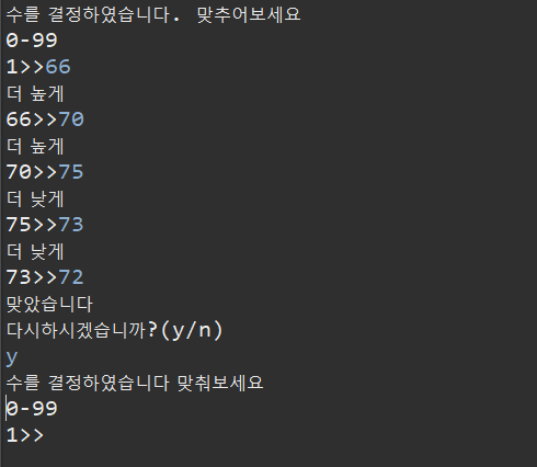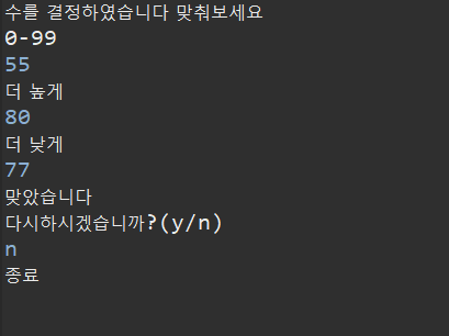 System.out.println("수를 결정하였습니다 맞춰보세요");